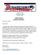 Students must have their own transportation and pay additional tuition to Champions Beauty and Barber University;