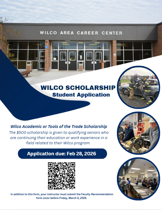 The $500 scholarship is given to qualifying seniors who are continuing their education or work experience in a field related to their Wilco program.